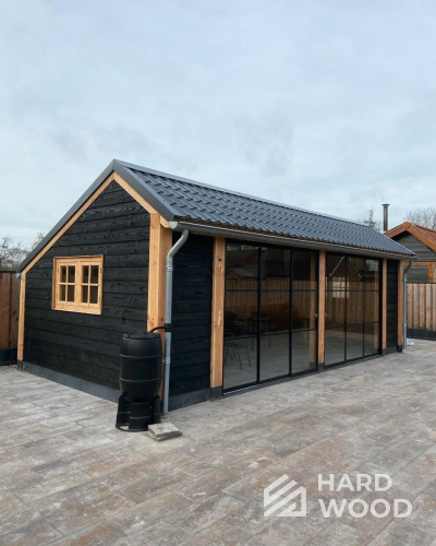 Лофт вырос из индустриальной эстетики: прямые линии, понятный каркас, фактура материалов на первом плане. В беседке это выражается в открытых балках, строгой геометрии, крупном остеклении и функциональности каждой детали. Никакой визуальной «тяжести» — только то, что работает на комфорт и стиль.